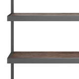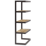 - Features Four (4) large solid Acacia open shelves, sturdy matte graphite Gray metal frame and base, Includes Anti - Tip Hardware