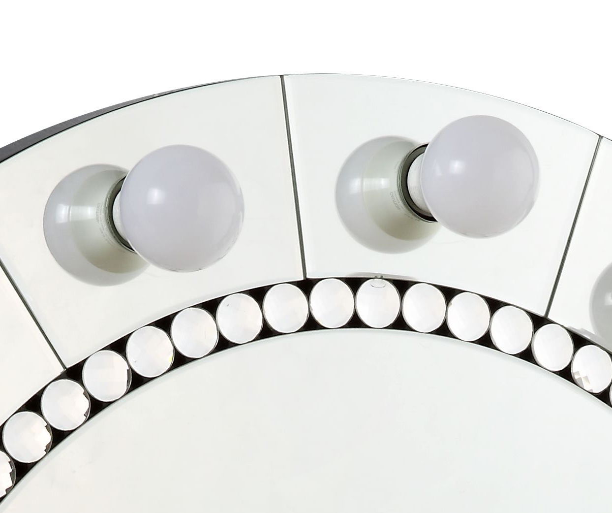 - Dazzling Faux Diamond Inlay: The mirror features a stunning faux diamond inlay along the trim, beautifully framed by clear glass, enhancing its reflective brilliance and making it a standout piece.