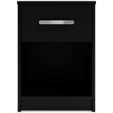 Practical and attractive, this nightstand blends seamlessly with modern decor and makes a smart addition to a bedroom. Its smooth-gliding drawer is ideal for bedside essentials. An open cubby provides a nice place for a storage basket or vase. The nightstand's curved metal pull in a brushed nickel-tone finish adds to its streamlined aesthetic. Combine with other units in the collection to create a room that’s sleek and stylish.