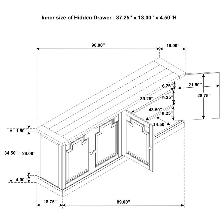 90.0"W x 19.0"D x 34.75"H - 192.24 lb
