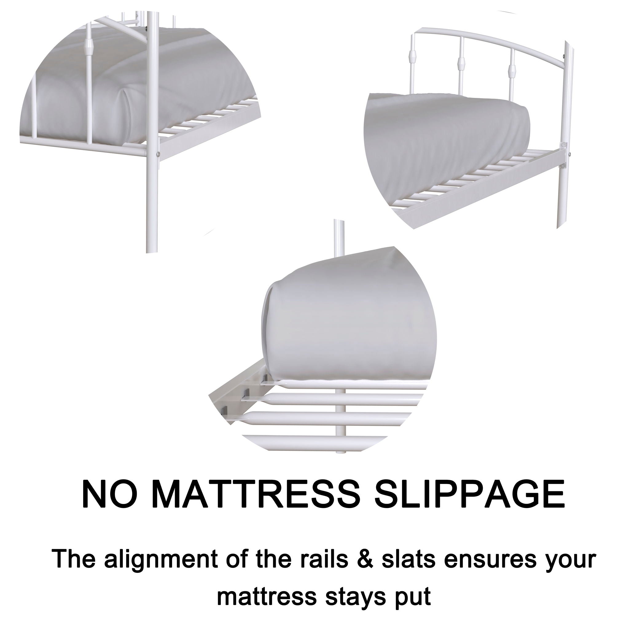 - No Box Spring Needed: Sturdy metal slats provide strong support, preventing mattress sagging without the need for a box spring.