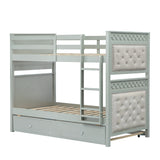 Silver Twin-Over-Twin Bunk Bed with Tufted Panels & Pull-Out Trundle