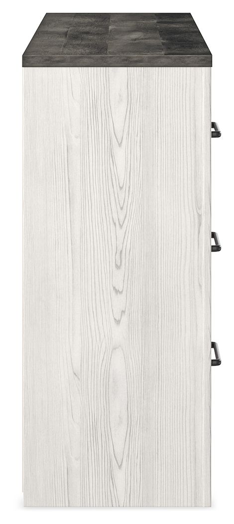Cool, clean and casually modern. This dresser’s wispy whitewash and gray finish sets the tone for your calming sanctuary. Large linear pulls add dimension and authenticity. Six smooth-gliding drawers neatly accommodate your wardrobe needs.