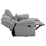 Transform your living room with the ultimate comfort and relaxation of our manual reclining set. Both pieces are wrapped in soft textured gray chenille fabric, offering a plush and inviting feel. The manual recline feature allows you to adjust your seating positions for optimal comfort, perfect for watching TV or reading a book. The set includes removable stainless steel cup holders and convenient soft-close storage compartments for added functionality. With pillow top arm supports providing extra comfort, this set is the perfect addition to any living space, combining style and coziness.