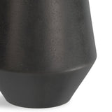 - Features a sleek design with a circular tabletop and flared base that tapers at the bottom.