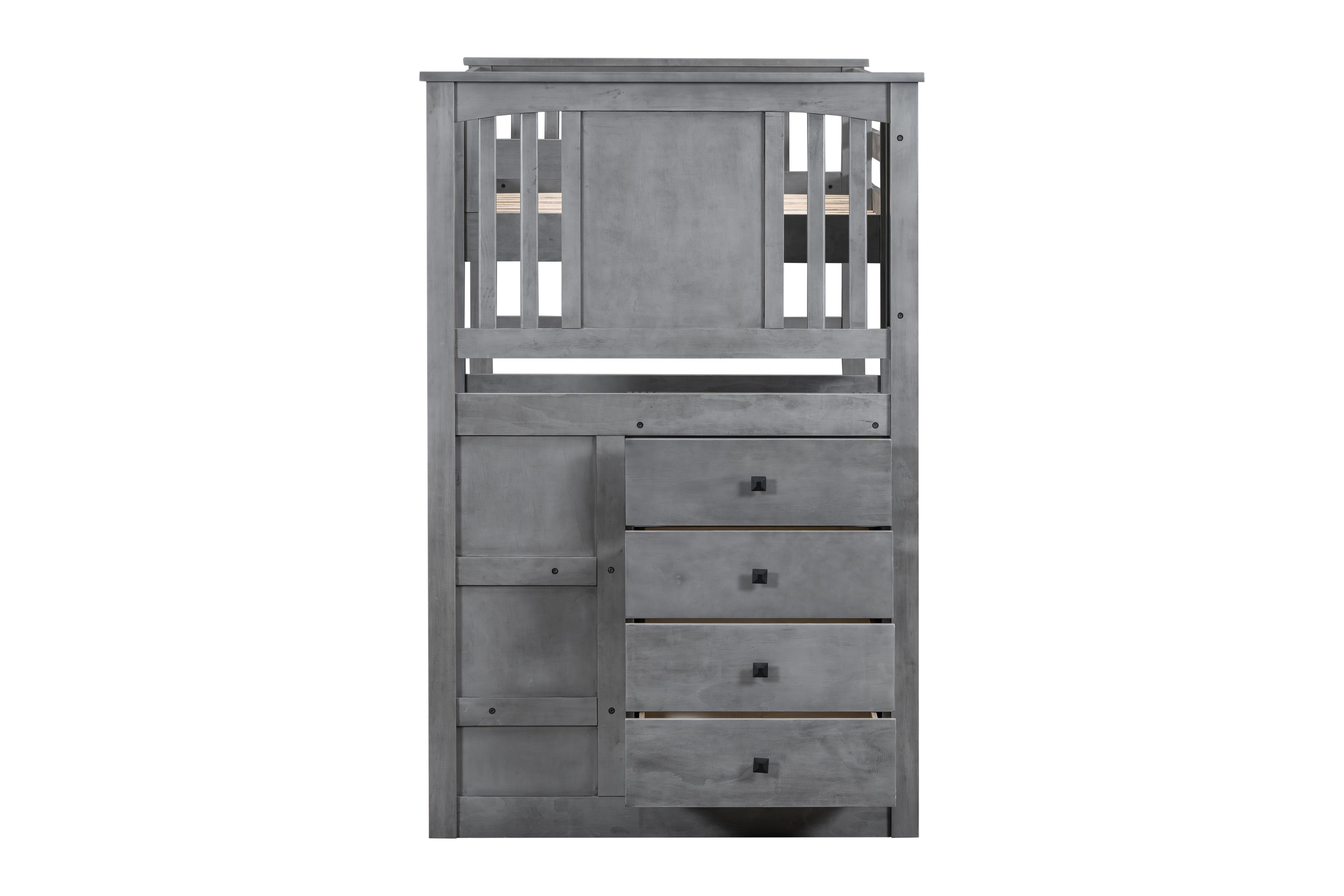Gray Stairway Twin Over Twin Bunk Bed with Built-In Storage Drawers