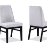 This dining set is a sophisticated blend of contemporary design and artistic flair, ideal for modern homes seeking a touch of elegance. The set features a sleek, round table with a faux marble top that is both beautiful and easy to care for. The table's base is a sculptural marvel, with a dynamic, cage-like structure that is as sturdy as it is stylish. Accompanying the table are plush chairs upholstered in a high-quality, textured fabric, their high backs and cushioned seats offering utmost comfort. The chairs' bold, black frames contrast with the light upholstery, adding a striking visual interest to the set.