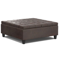Harrison - Large Square Coffee Table Storage Ottoman - Distressed Brown