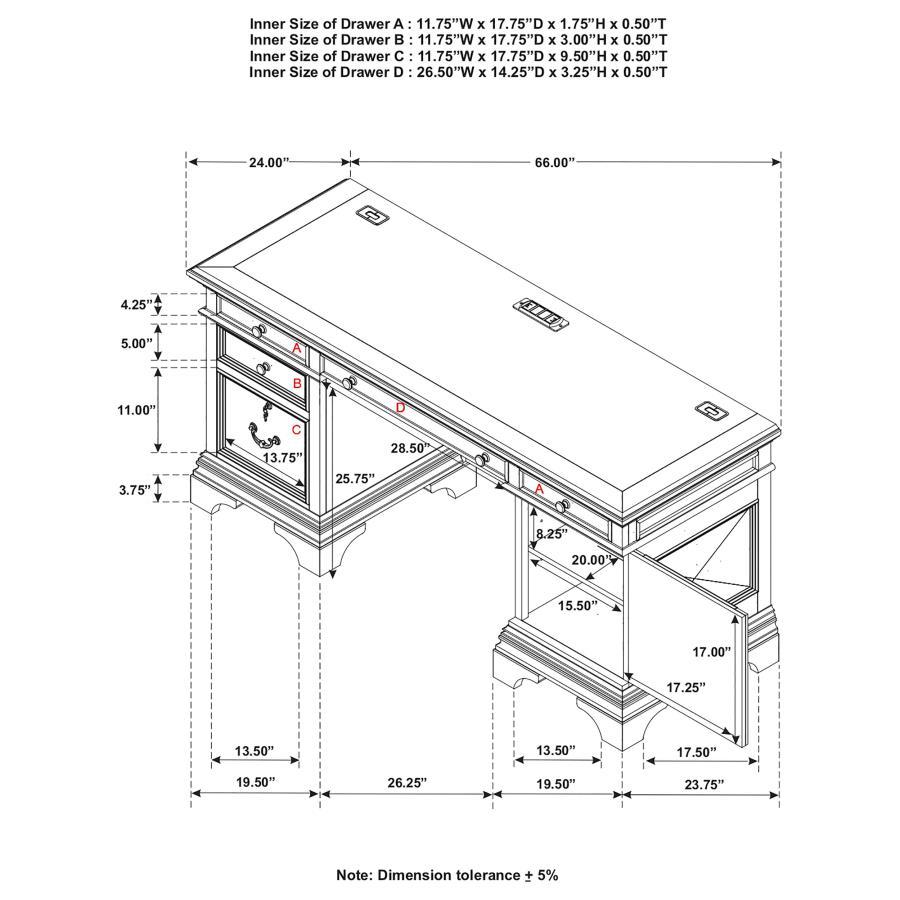 Hartshill - 5-Drawer Credenza Office Desk Burnish Oak - Burnished Oak