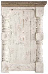 Set your sights on modern farmhouse style with this XL TV stand. Distressed two-tone treatment blends a weathered gray with vintage white for an utterly charming effect. Turned posts lend a hearty, substantial look that feels right at home, while plenty of open shelving makes the aesthetic anything but heavy.