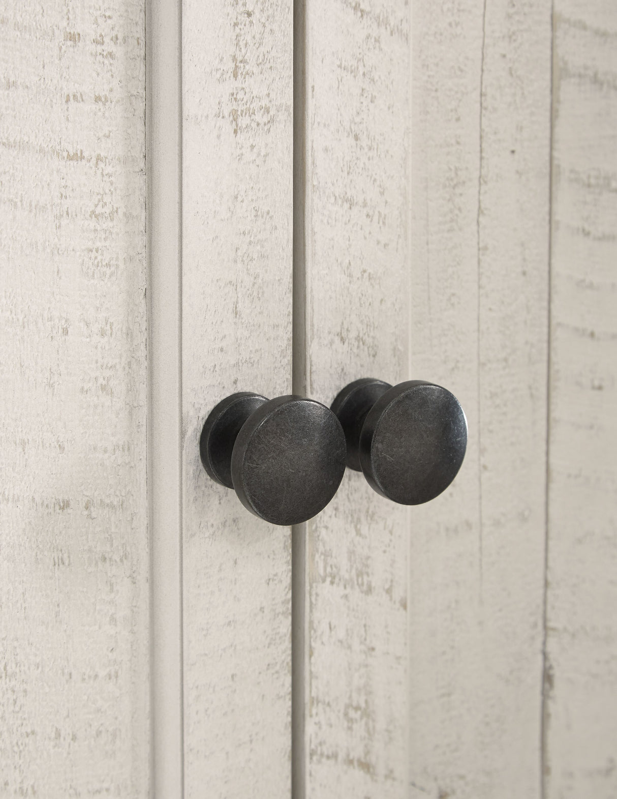 • Two-tone distressed finish: weathered gray top; vintage white base