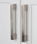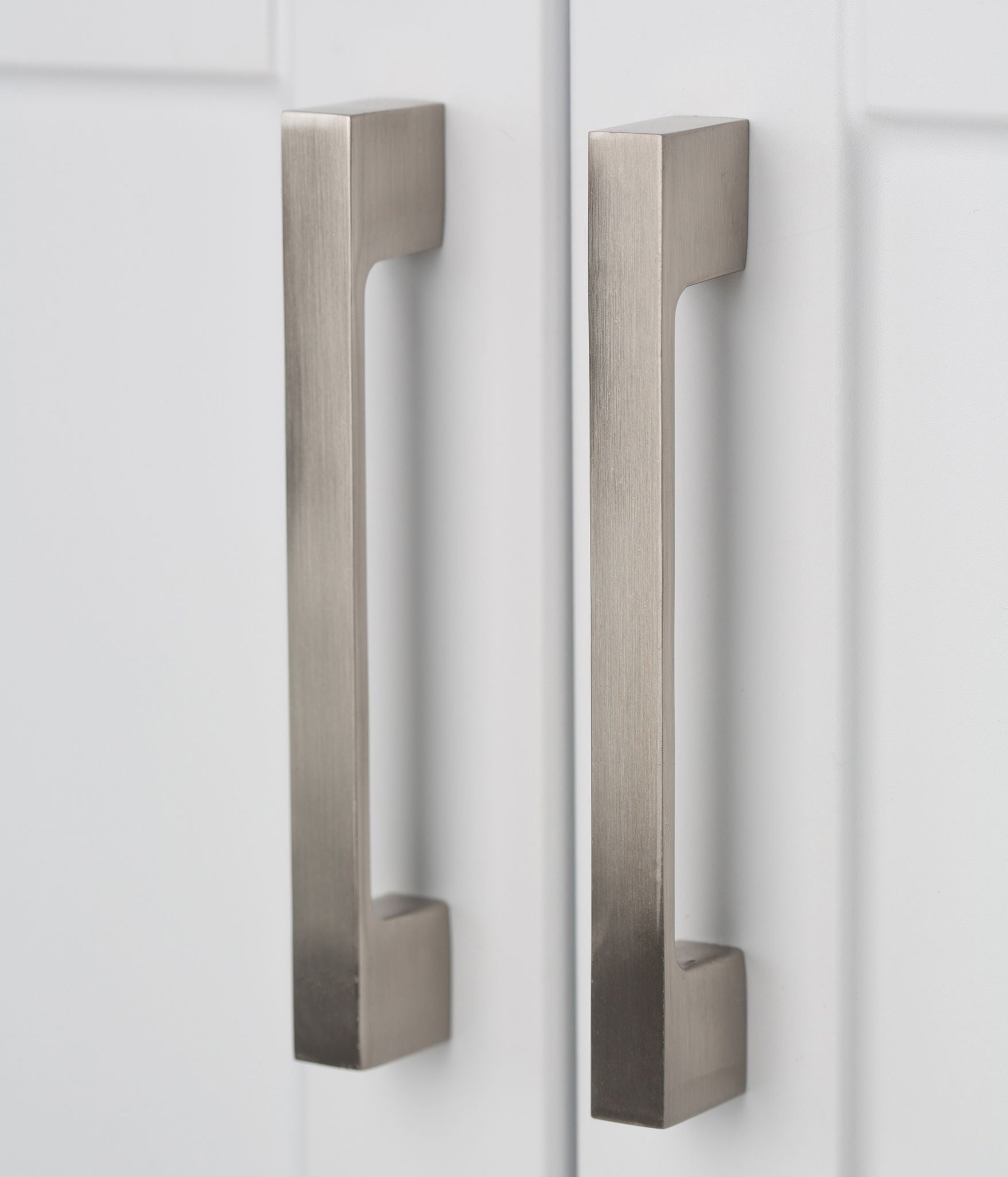 - Cabinet is constructed with melamine and doors are wrapped with PVC, materials that are highly durable, low maintenance, and water resistant