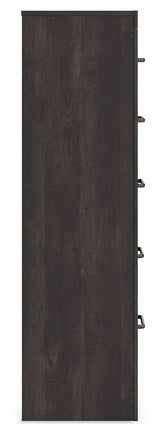 This chest of drawers puts a casually chic twist on everyday function. Its rustic charcoal finish pairs well with other neutrals and pops of color alike, giving you the flexibility to change up your aesthetic as you please. Smooth-gliding drawers keep clothes and bed linens stored in style.