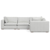 • The square throw pillows and loose, reversible, 7.5-inch-thick back cushions are stuffed with a combination of feather and fiber filling for a softer feel, while the armrests and sides of the ottoman are covered in thick foam padding for extra comfort.