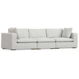 • The square throw pillows and loose, reversible, 7.5-inch-thick back cushions are stuffed with a combination of feather and fiber filling for a softer feel, while the armrests are covered in thick foam padding for a comfy seating experience.