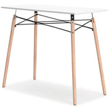 A contemporary take on a classic look, this home office desk adds a touch of artistic flair to your at-home work experience. It's designed with small space living in mind, and is perfect for small apartments and dorms. With its painted top, metal framework and wood legs, this rectangular desk is intricately eye-catching, allowing you to work in style.