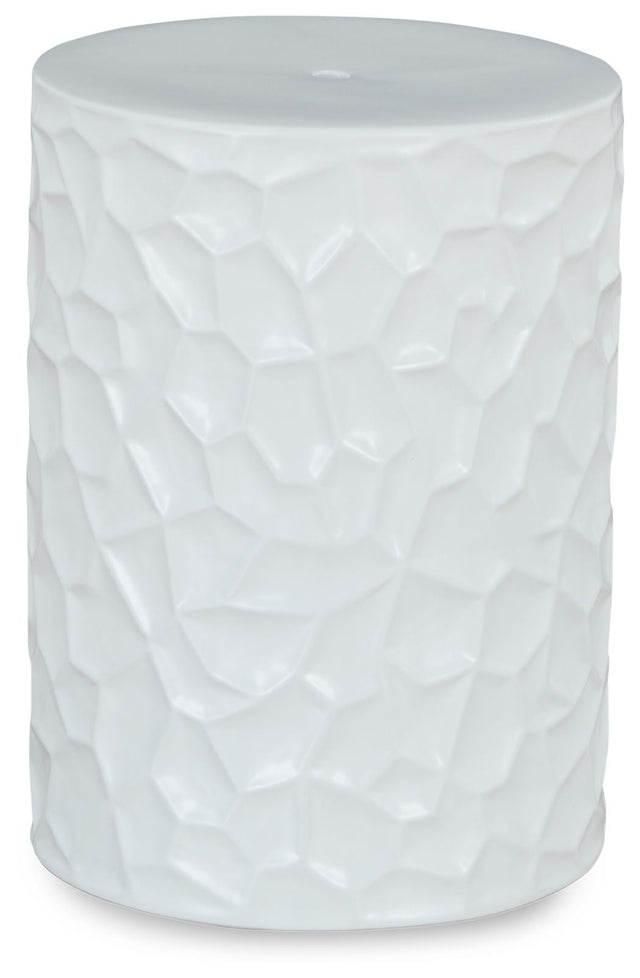 Inspired by modernist sculpture, this contemporary accent stool is an homage to the power of art. Ideal for any outdoor or indoor living space, it features bold irregular patterned sides and a minimalist matte white finish, creating an instant aura of forward-thinking flair.