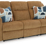 Indulgent comfort meets fashion-forward flair in this reclining sofa. Its luxuriously soft upholstery and captivating color show off your cozy yet smart style. Sleek track arms infuse a modern sensibility, while the striking accent pillows make this piece even more inviting. Simple pull tab reclining puts endless relaxation within easy reach, whether you're lounging solo or with friends.