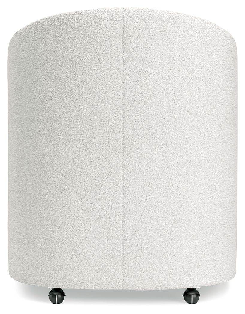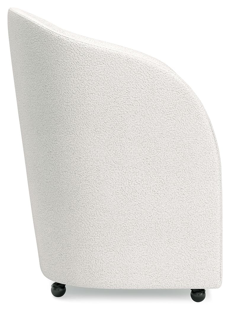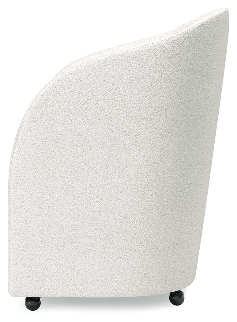 This fully upholstered desk chair makes a lasting impression in a simply stunning way. Its magnificent curves are enhanced with a neutral boucle upholstery that’s so pleasing to the eye. This bucket chair is the piece you’ve been looking for to elevate your contemporary home office. Plus, it’s set on casters so it’s easy to move around.