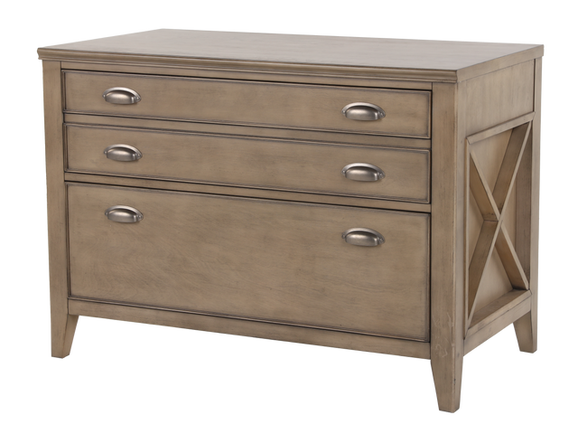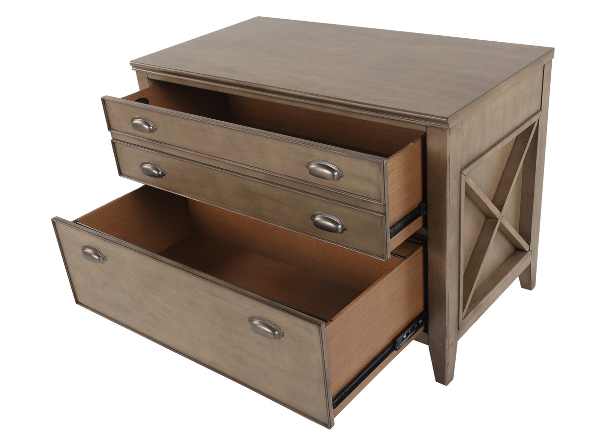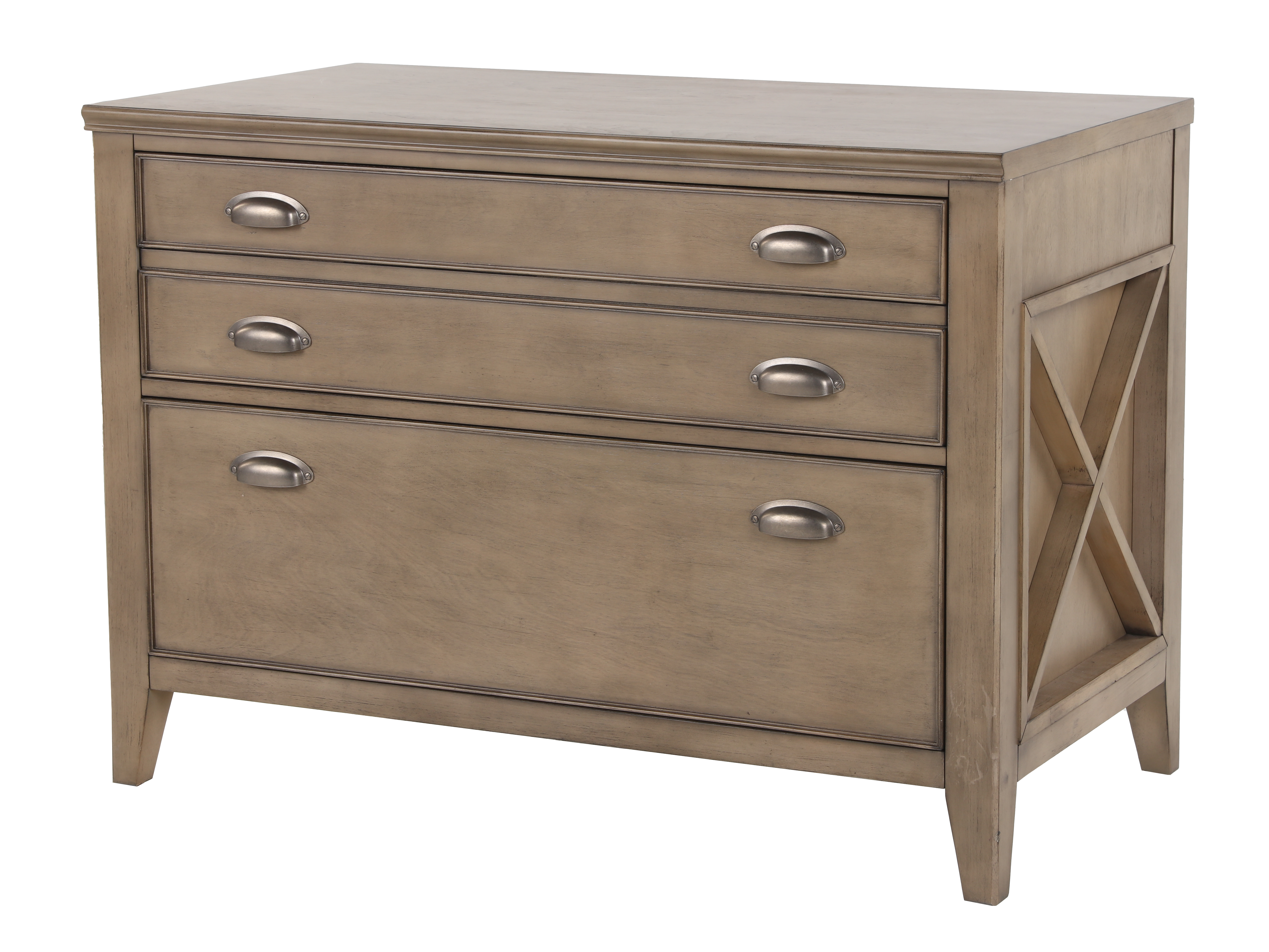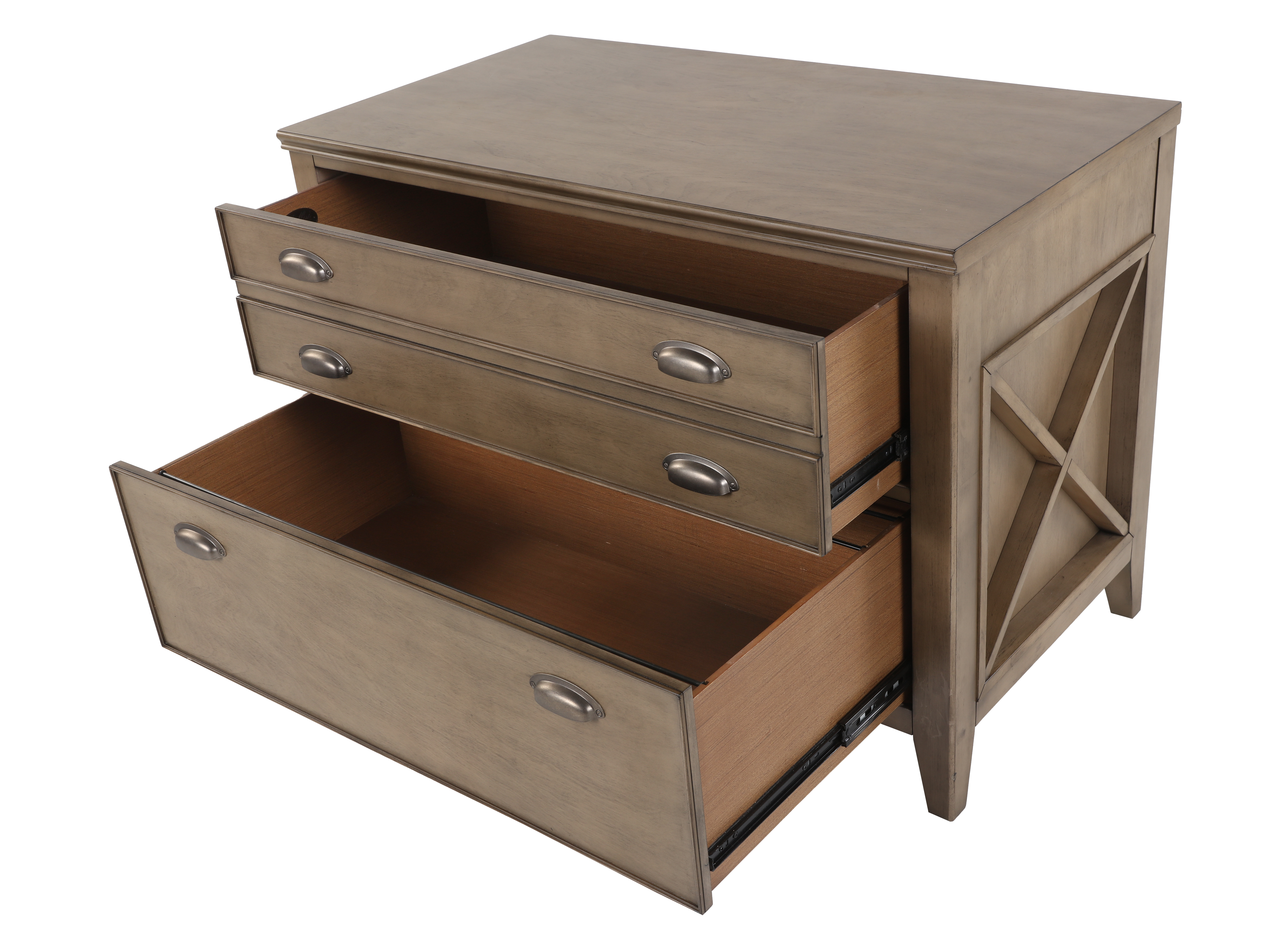 Elevate your home office storage with this light brown lateral file cabinet. Its sleek design, clean lines, and silver pulls contribute to a contemporary style. Whether used on its own or paired with a matching desk, this furniture piece is sure to rejuvenate your home office, infusing it with a fresh, modern aesthetic that you'll absolutely love!