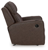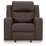 Indulge your lust for comfort and love for contemporary design with this rocker recliner. Made for easy everyday living, it’s upholstered in a heavyweight padded faux leather and accented with contrast jumbo stitching for fashion-forward flair. Sleek track arms elevate the look with a touch of modern sensibility.