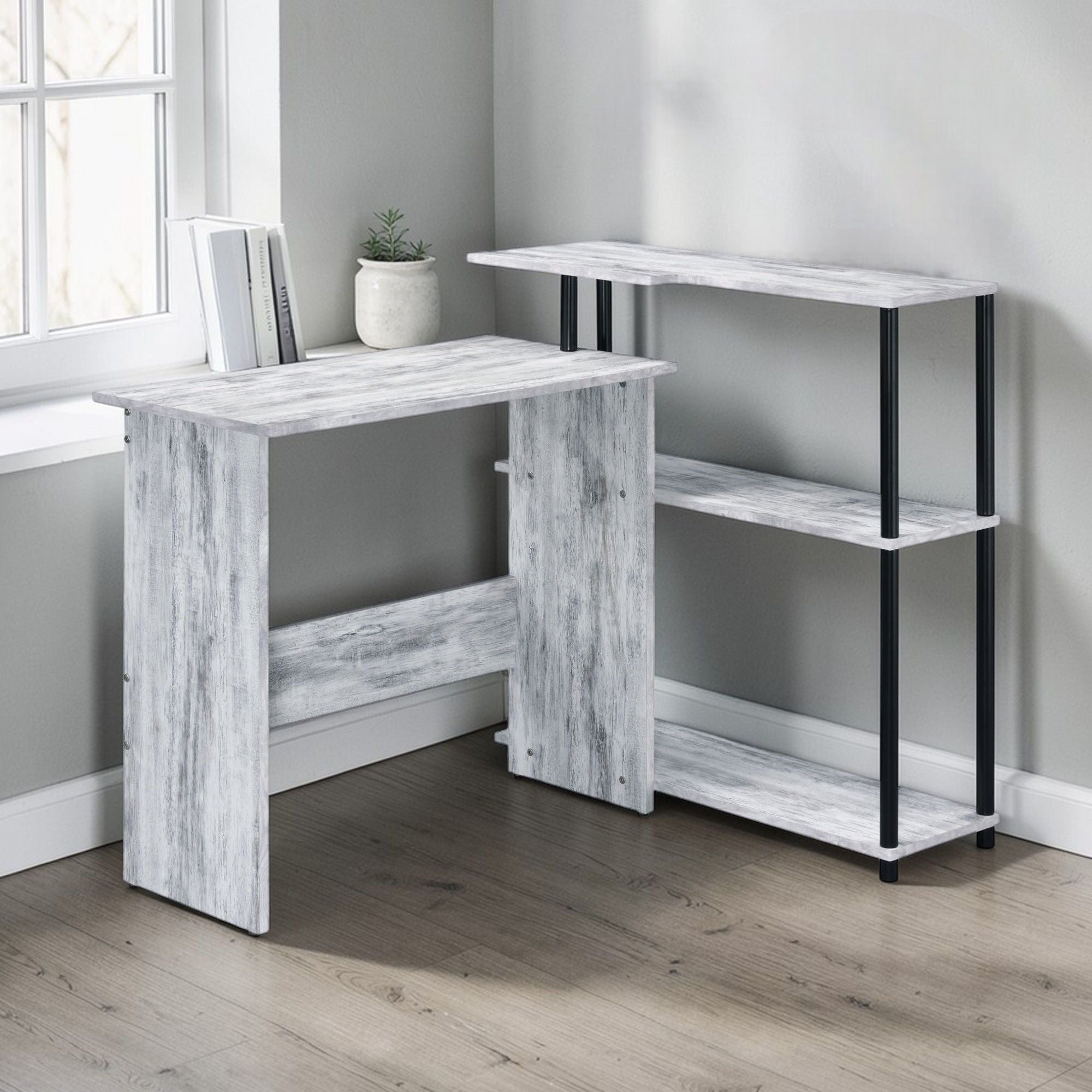 - Versatile Finishes: This L-shaped writing desk is available in three finishes allowing it to blend seamlessly with various decor styles.