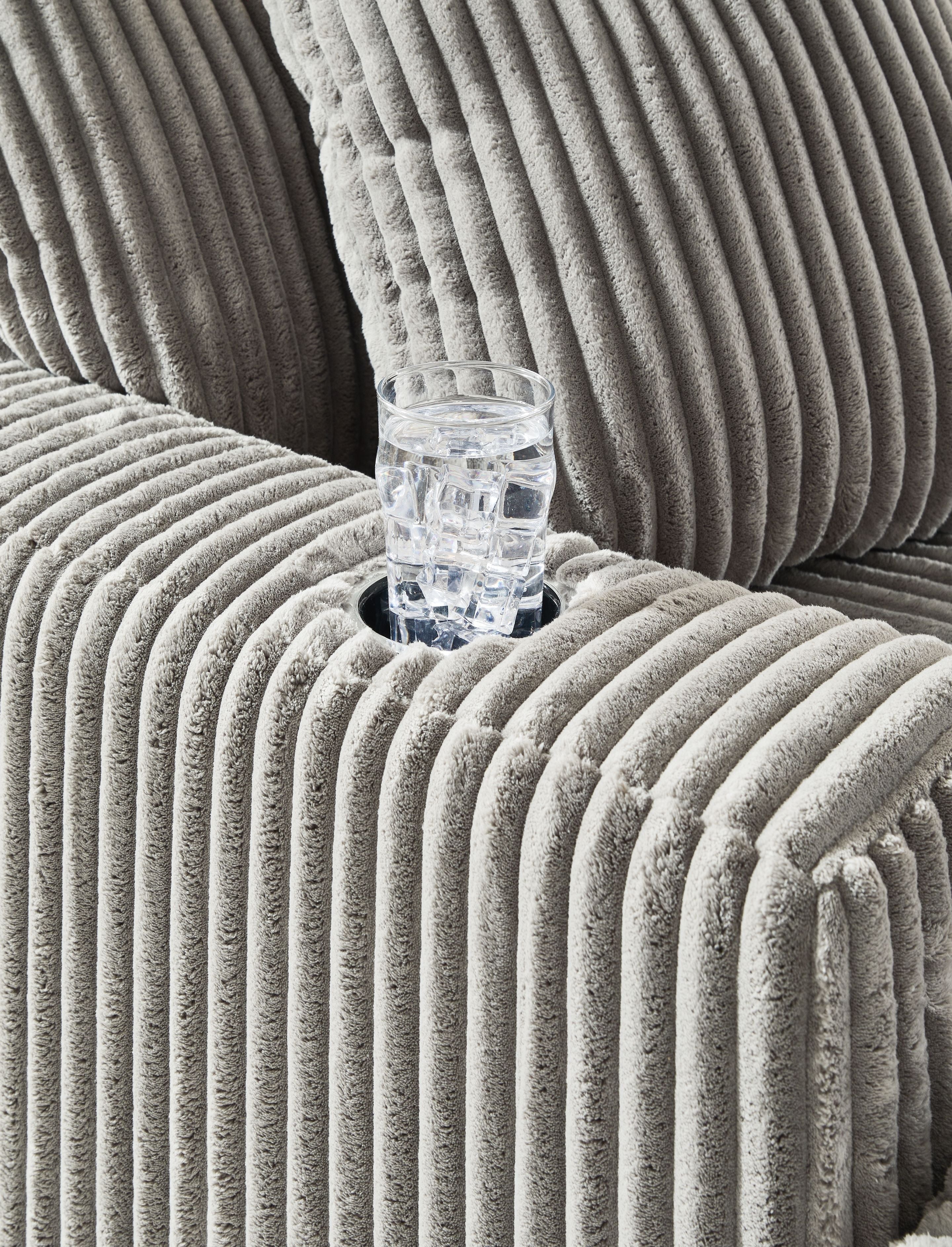 Plush and posh. Showcase your eye for on-trend texture with the statement-making cord upholstery of this chaise. Its stunningly soft fabric entices in hue, complementing contemporary color palettes. Sink into the cushions and plan to stay a while—this cozy oversized chaise highlights your high-end approach to comfort and style.