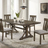 Bring rustic elegance to your dining space with this stunning farmhouse-inspired dining set, designed for both style and functionality. The beautifully crafted table features a robust trestle base, adding character and durability, while its rich wood finish enhances the natural charm of your home. The matching chairs and bench showcase a sleek slat-back design with plush upholstered seating, ensuring comfort for every gathering. Perfect for casual family meals or formal entertaining, this collection effortlessly blends rustic warmth with contemporary sophistication, making it a timeless centerpiece for any dining room.