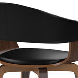 - Mid-Century Modern styling includes comfortable curved padded seat and seat back, walnut veneer on bentwood frame and angled legs