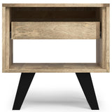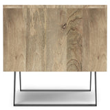 - Modern Industrial design features discreet hand pulls and solid metal angled legs for reliable support