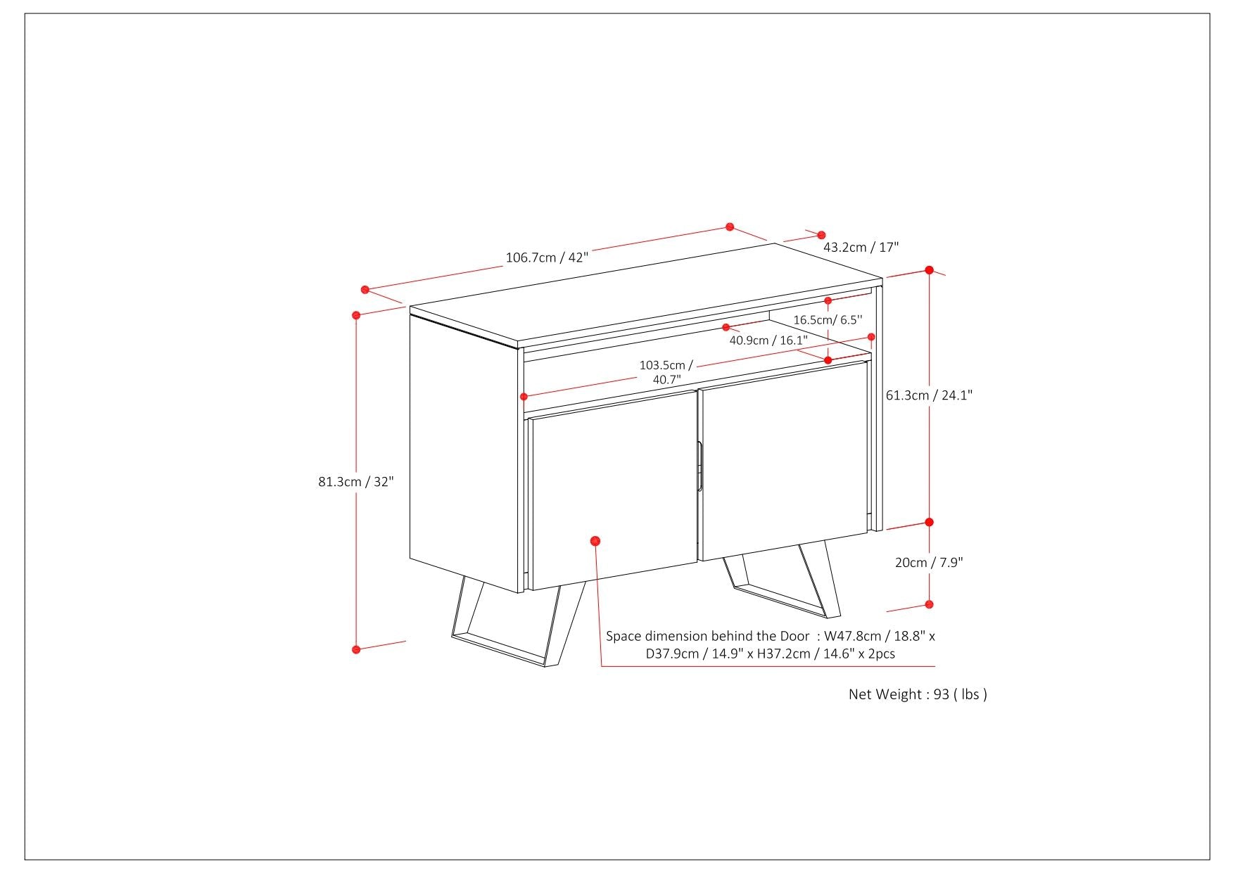 42.0"W x 17.0"D x 32.0"H - 92.6 lb