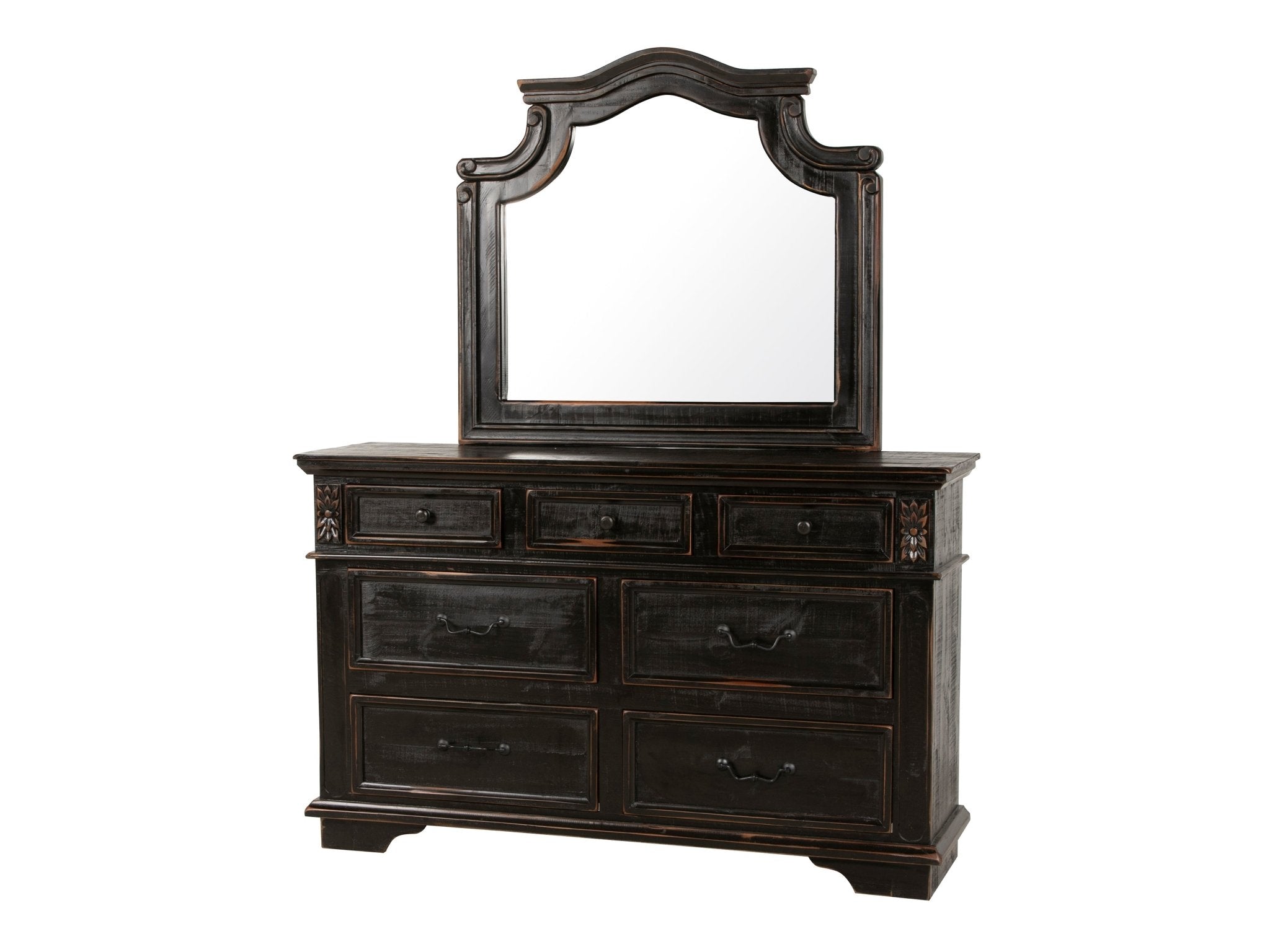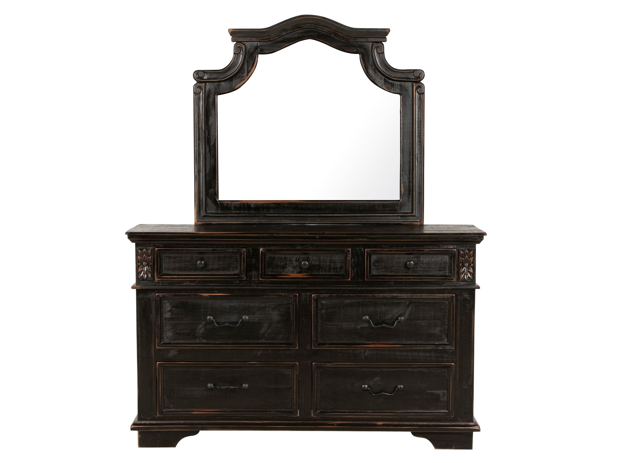 Includes: 3-piece bed (headboard, footboard, rails & slats), Dresser, Mirror, Nightstand.