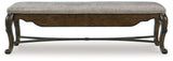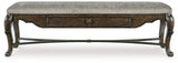 From its ornamental appliques to its large scale, this dining bench makes a bold statement. With ornately shaped legs, a plush cushioned seat and a storage drawer, the opulent bench wows with stunning style. The look is timeless. The feel? Right at home.