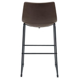This cozy, casual stool will have you dining in style. With a supportive back and foot pedestal, it offers a comfortable place to enjoy a meal or a cocktail. Its seat is upholstered in beautiful, two-tone brown leatherette. Its base is constructed from high-quality metal in a striking black finish. With a sleek silhouette and a classic design, this stool looks fabulous in any dining area.