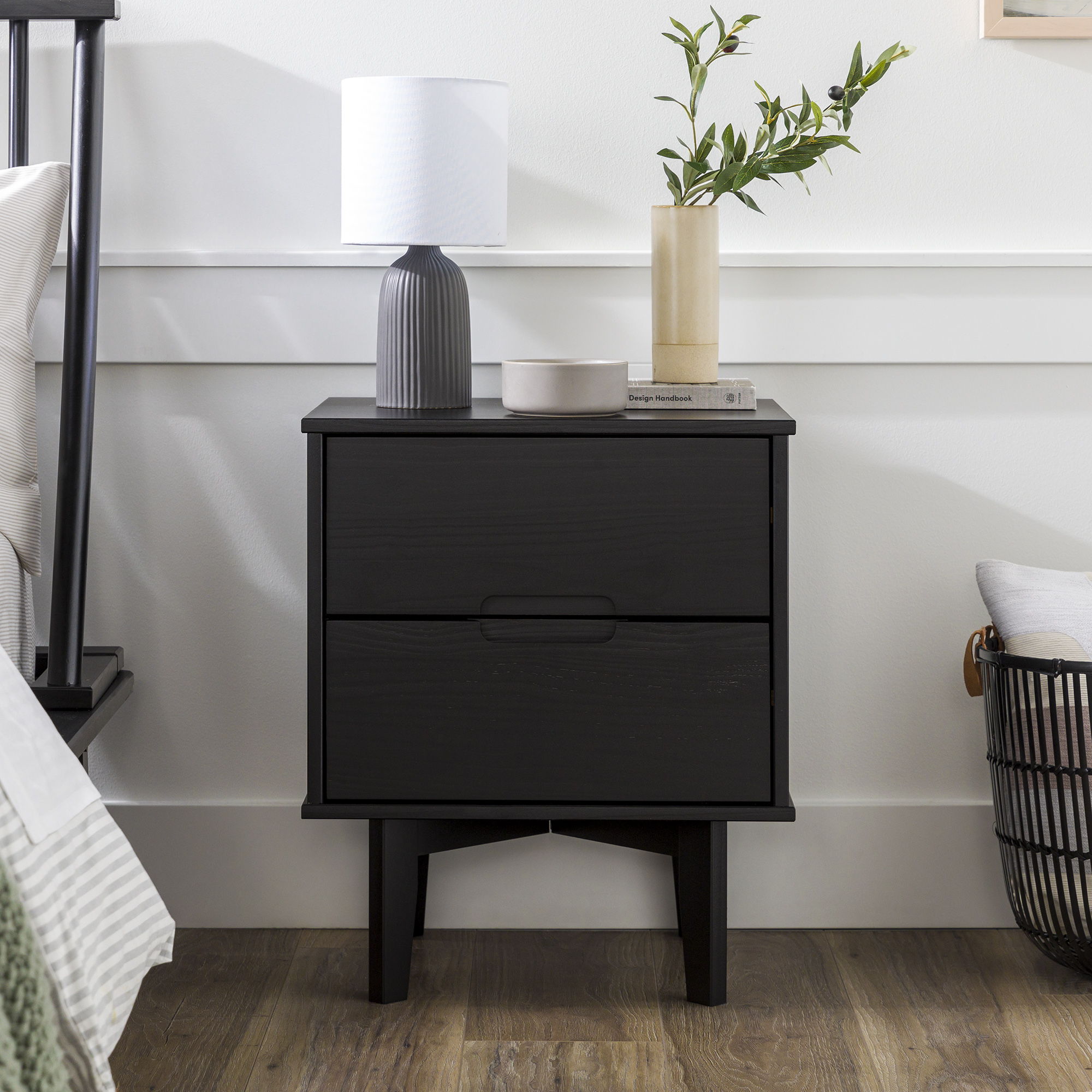 Mid-Century Modern 2 Drawer Solid Wood Nighstand With Cutout Handles