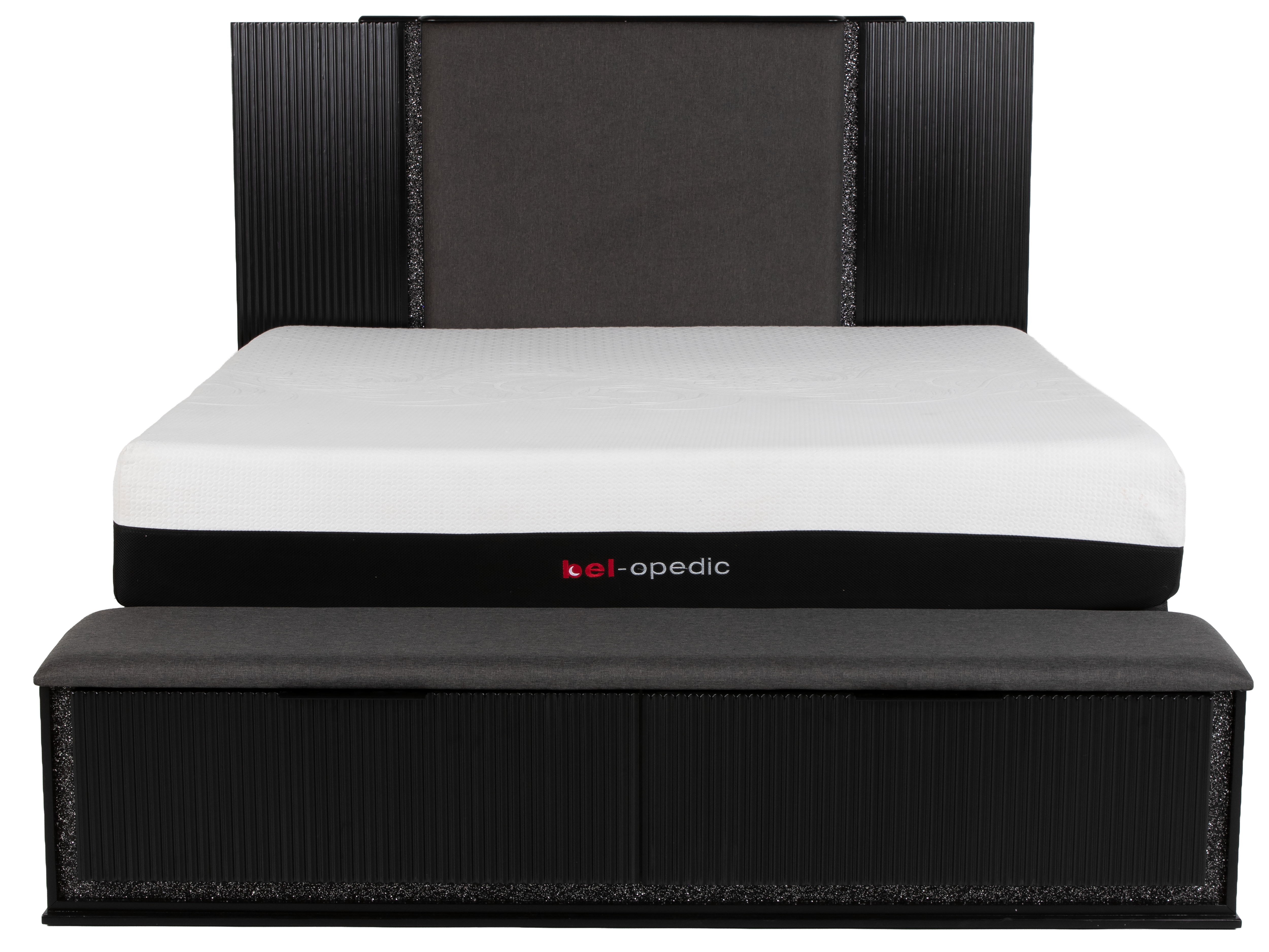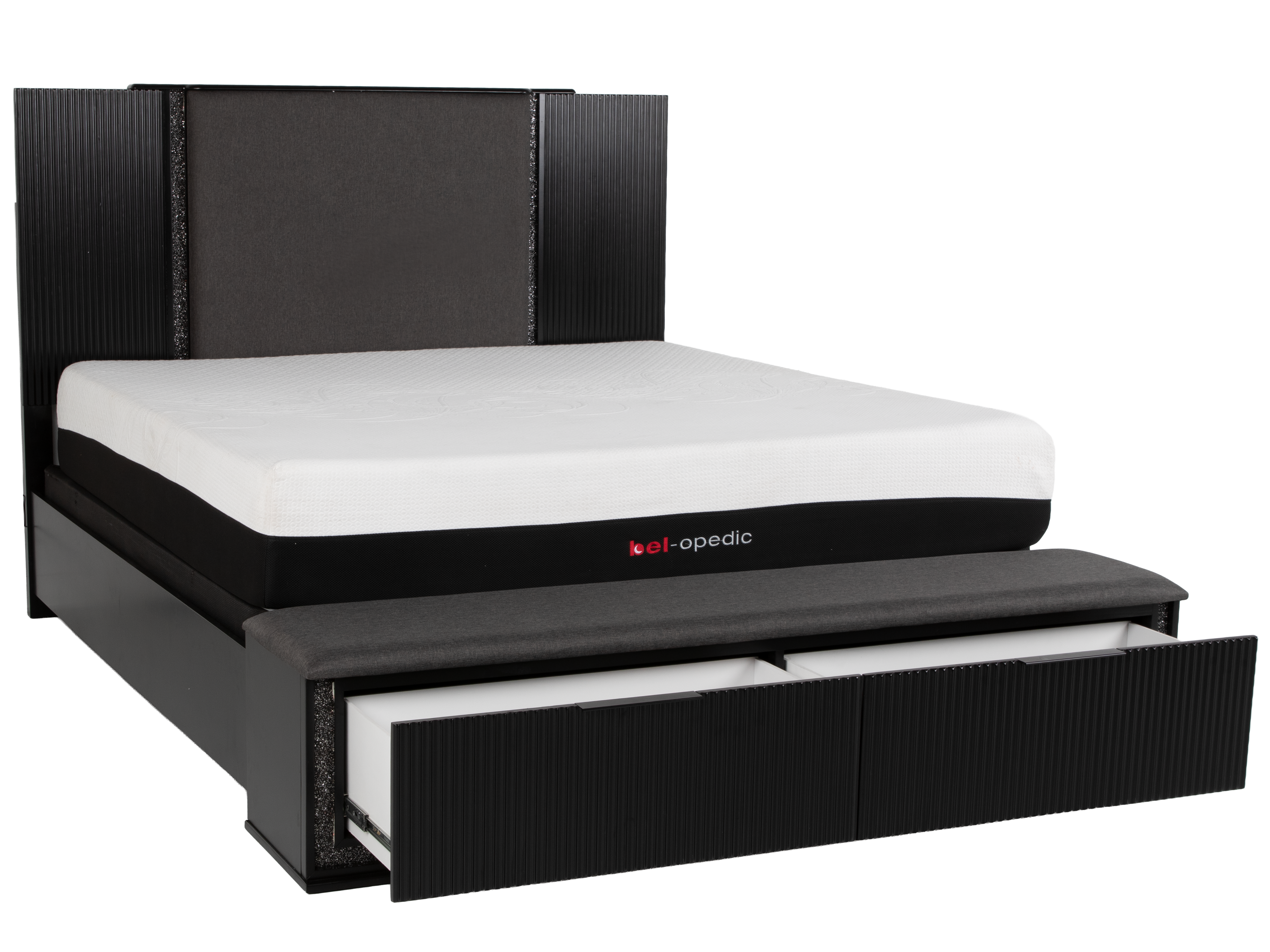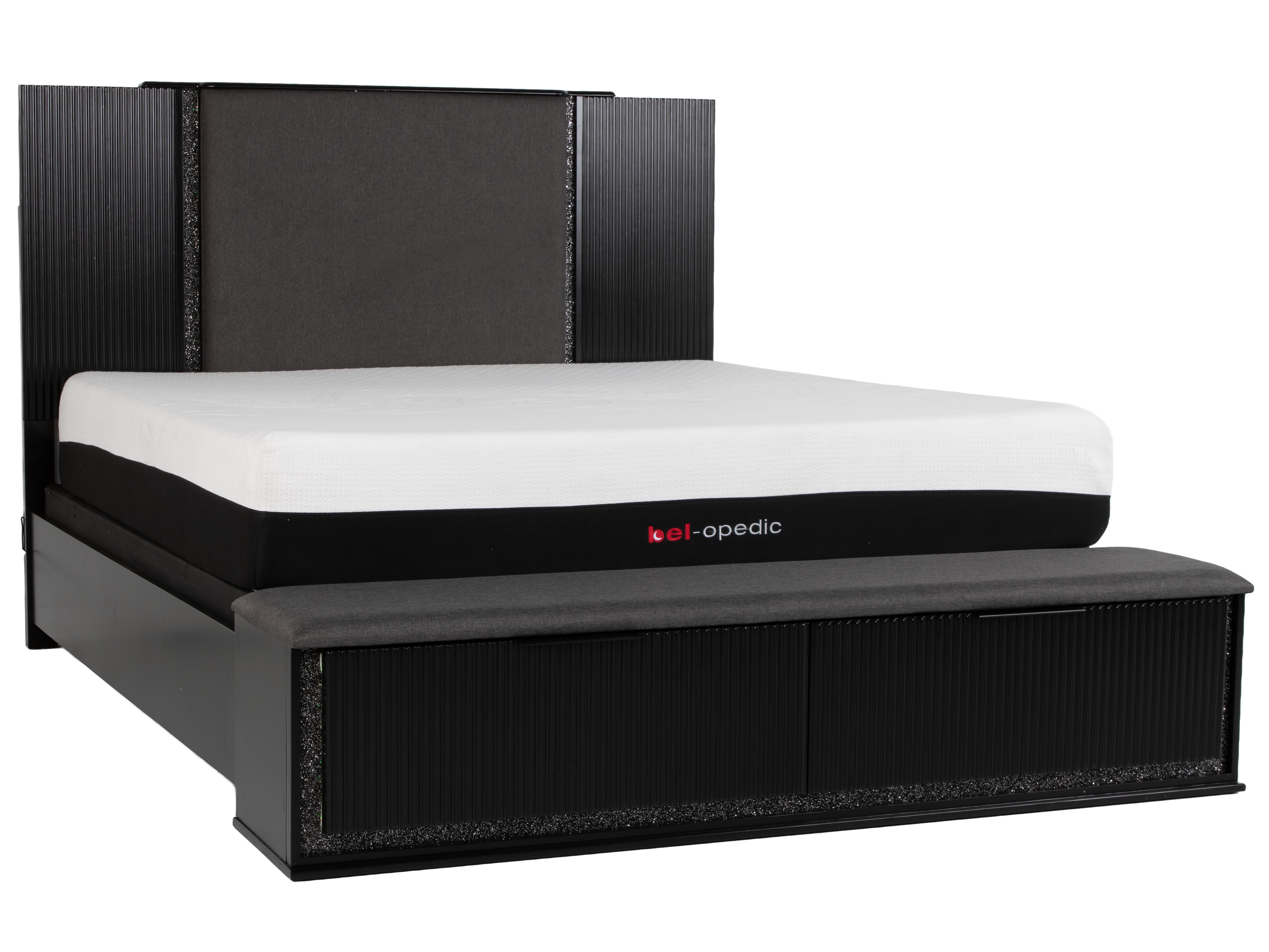 Modern Glam Black Storage Bedroom Set with LED Headboard & Footboard