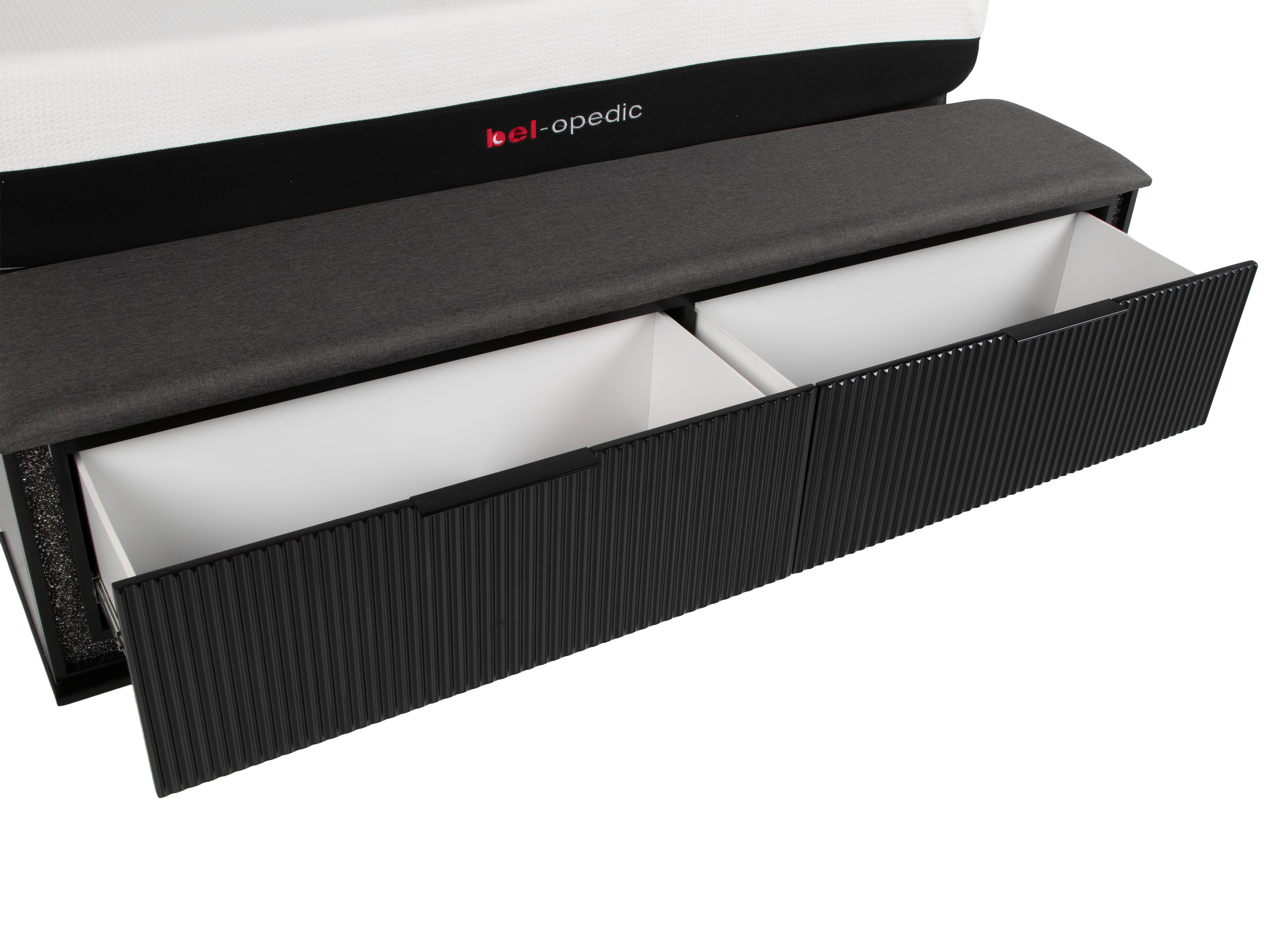 Yes. The footboard includes two built-in storage compartments and is upholstered for a finished look.