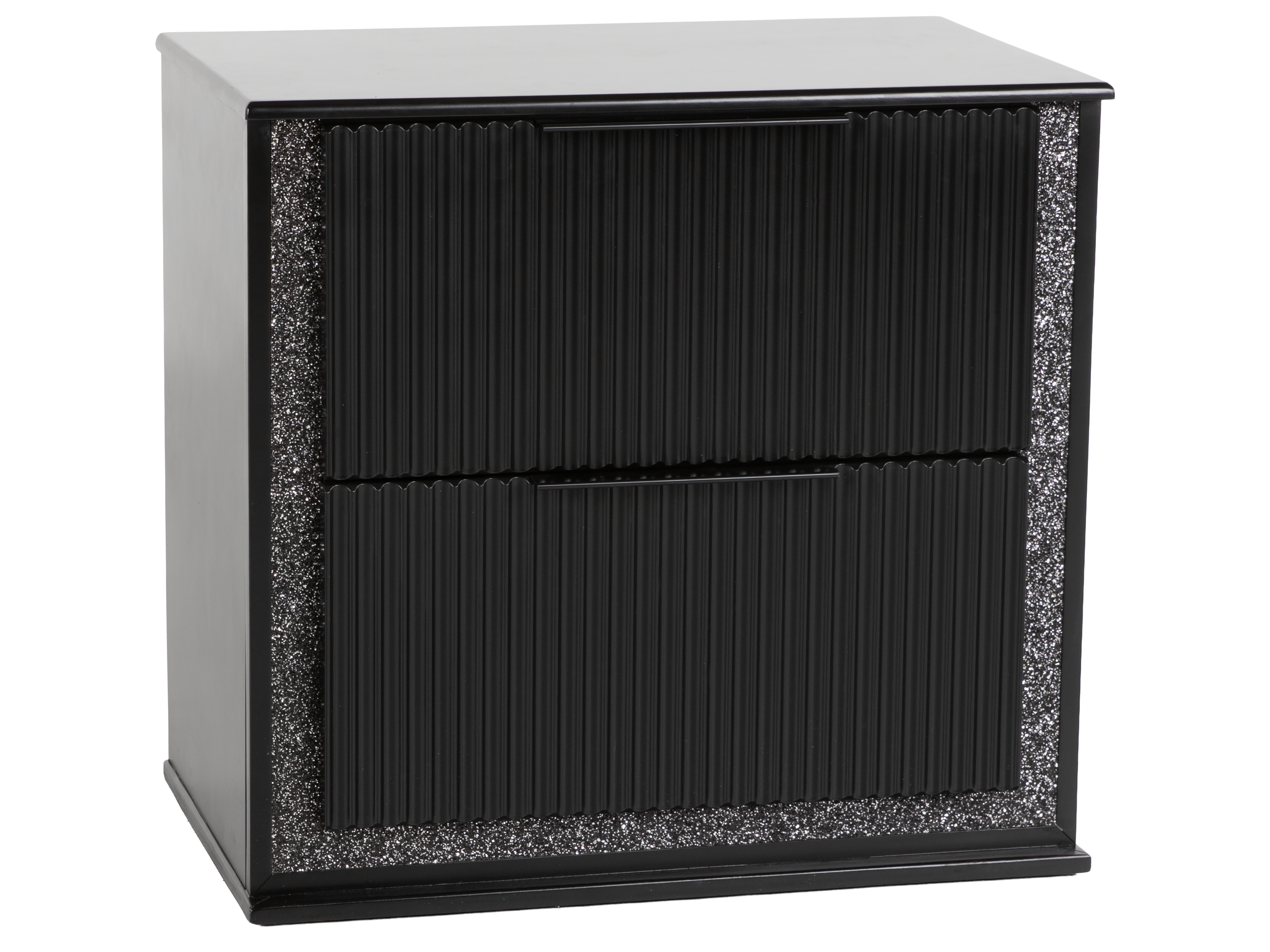The finish is black. Wood species is pine, the back panels are MDF, and the drawer box/base use plywood + MDF. Hardware is metal.