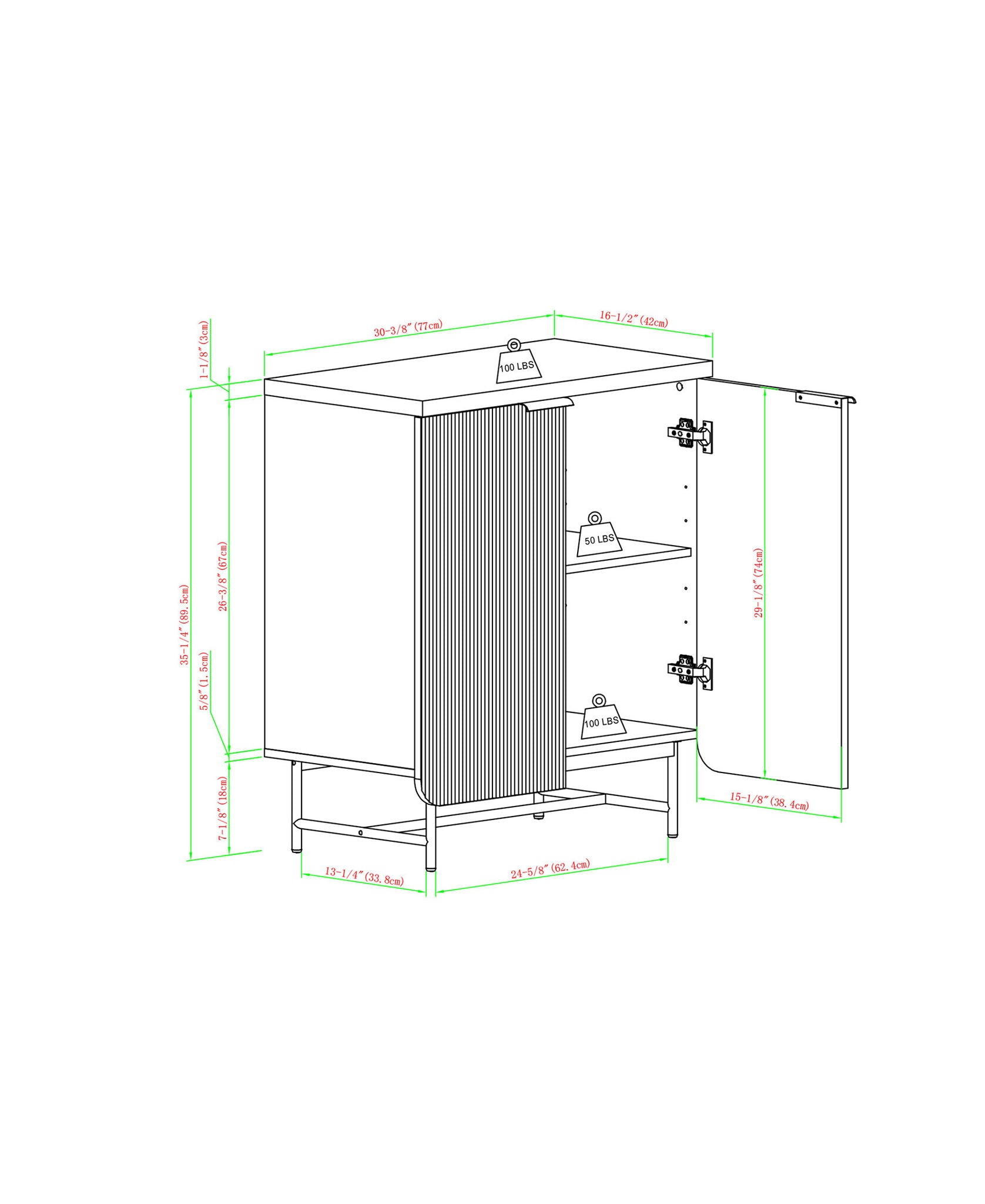 - Display as a bar cabinet, storage console, or accent cabinet