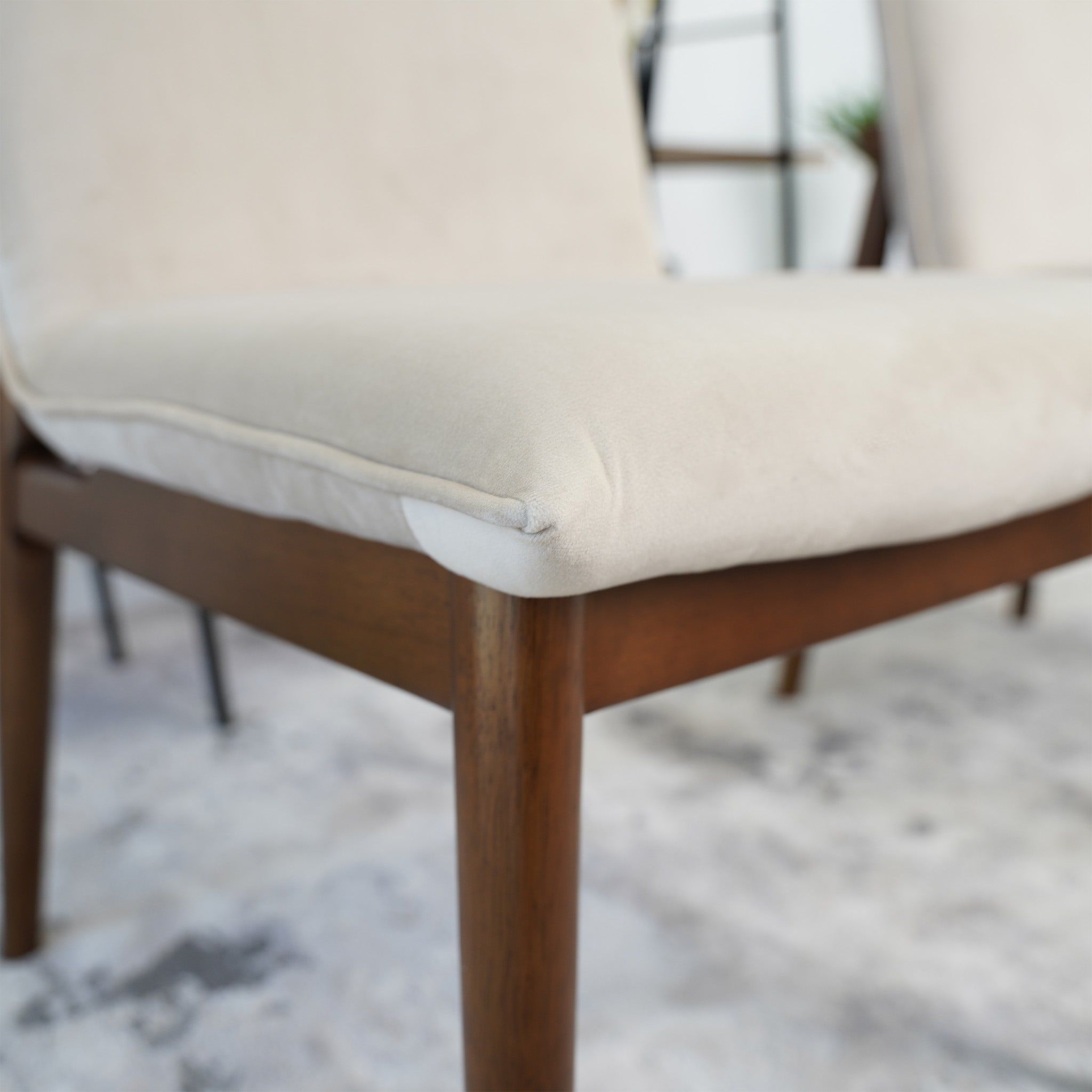 - Comfortable Upholstery: Upholstered in chic performance velvet, the chair features a gently curved and slightly angled seat and back, ensuring comfort during meals and conversations.