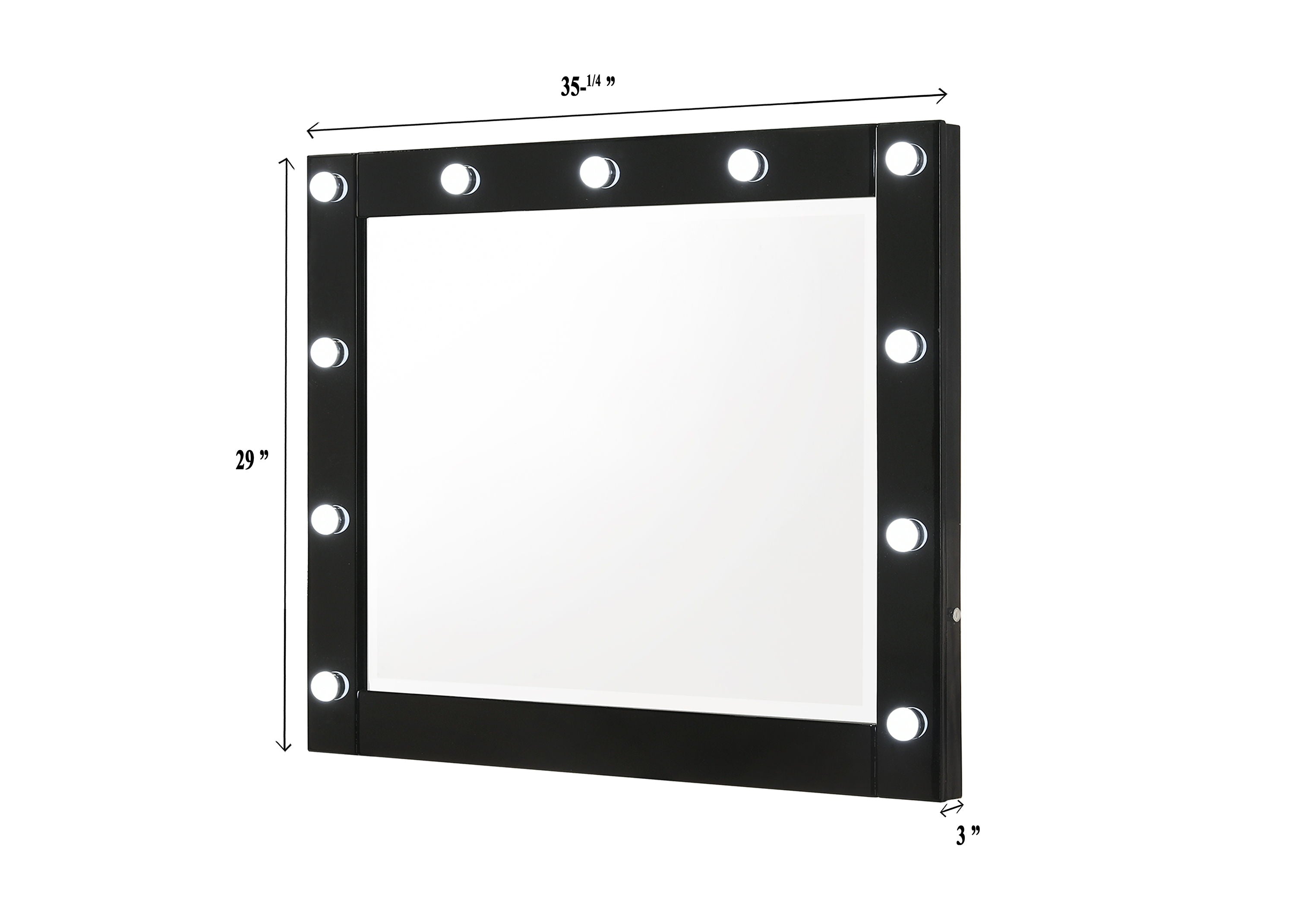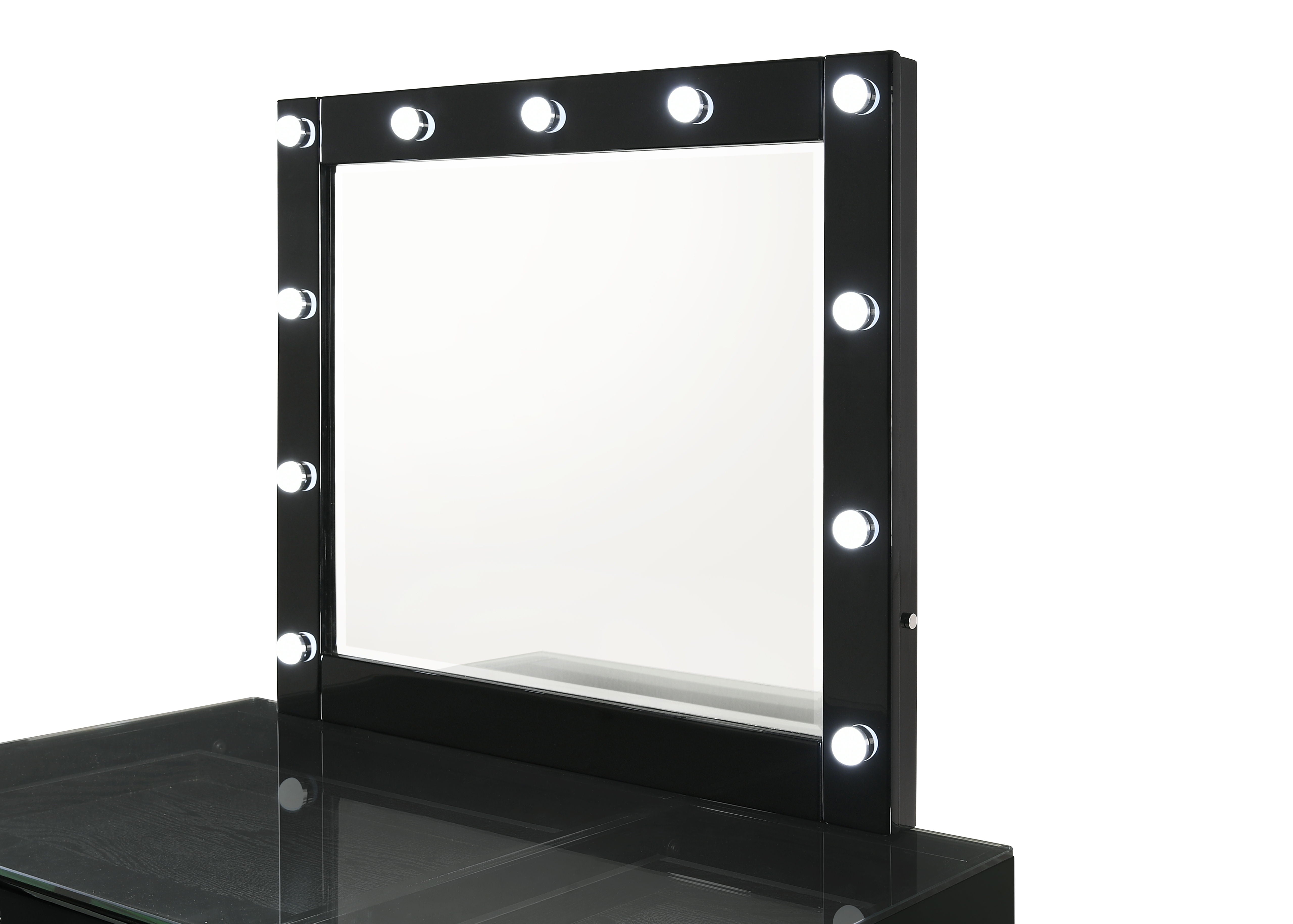 Morgan - Vanity Desk With Glass Top And LED Mirror - Black