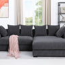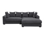 Enhance your living space with our Sectional Set, meticulously crafted for a perfect blend of style and comfort. The luxurious, textured corduroy fabric ensures both tactile pleasure and lasting durability. Designed with relaxation in mind, the sectional features generously padded armrests that invite you to unwind. Carefully positioned for comfort and a sleek aesthetic, the armrests complement the configuration, which includes a chaise on the right-hand side for a balance of lounging space and seating comfort. The centerpiece loveseat, perfect for cozy gatherings, is complemented by six solid-colored throw pillows, adding a layer of personalization and comfort. Supported by black plastic legs, this ensemble seamlessly integrates stability into its overall design.