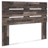 Streamlined design and a stunning two-tone finish come together in one simply extraordinary headboard. This queen panel headboard is sure to impress with platform styling and a rich brown finish over replicated pine grain texture. Its mid-century profile is a nod to the past, while the updated finish keeps it solidly in the present.