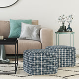 - Upholstered with Hand Woven Dark Blue and White Cotton