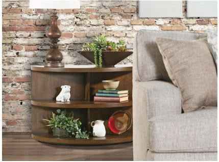 Make the most of tight spaces with a sleek demilune (half-moon) sofa table that tucks neatly behind a sofa or sits flush against a wall. The rounded front softens the room while two fixed shelves keep books, baskets, and décor within easy reach. Crafted from wood and veneers in a warm walnut finish, this three-tier design delivers everyday durability with a timeless, mid-century-leaning silhouette.