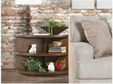 Half-Moon Sofa Table with 2 Shelves – Warm Walnut