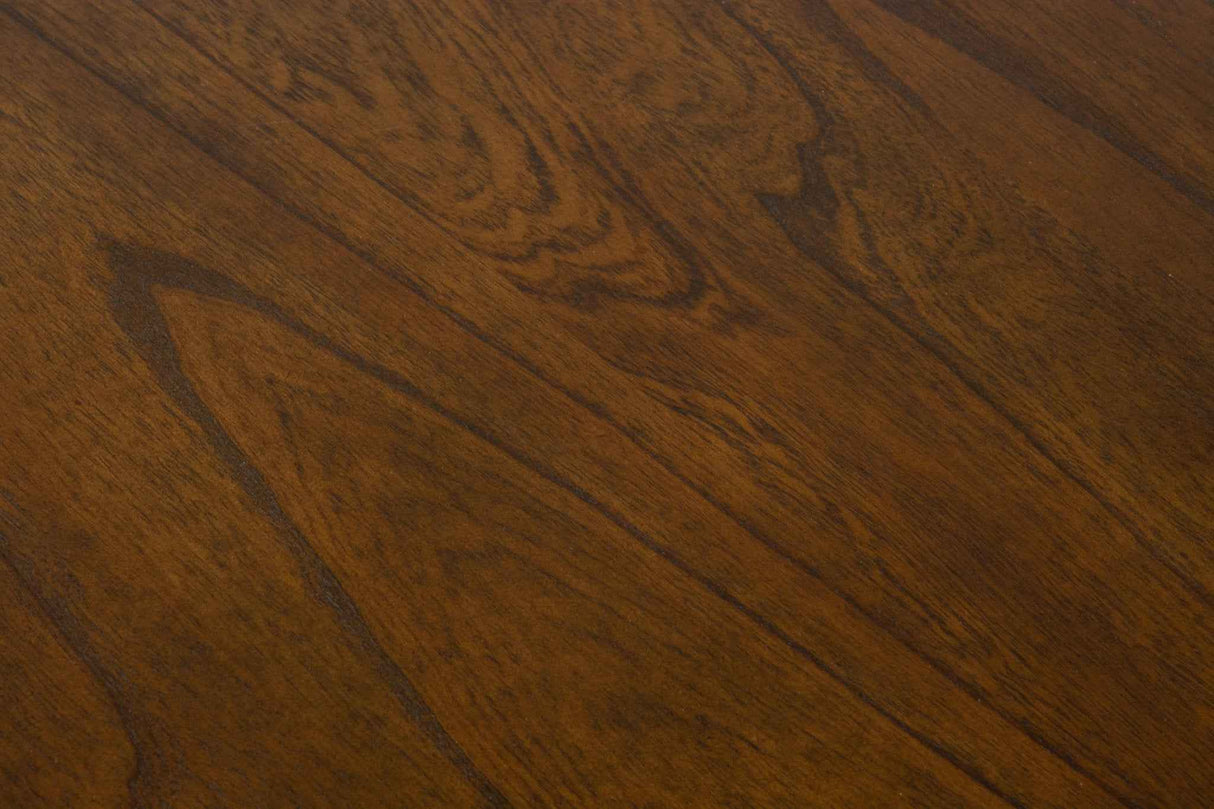 The table is crafted from wood and veneers over a stable engineered core in a warm walnut finish.