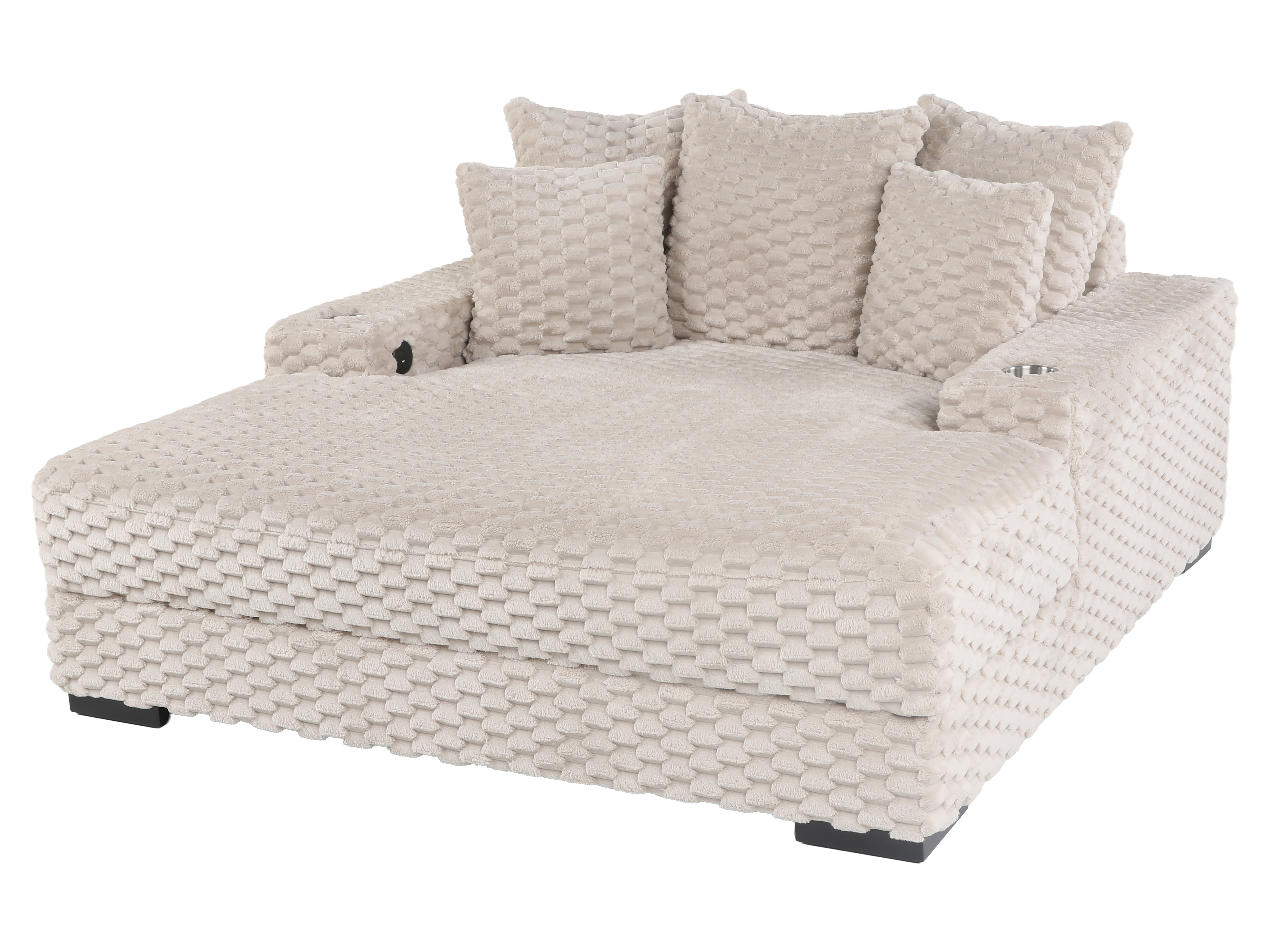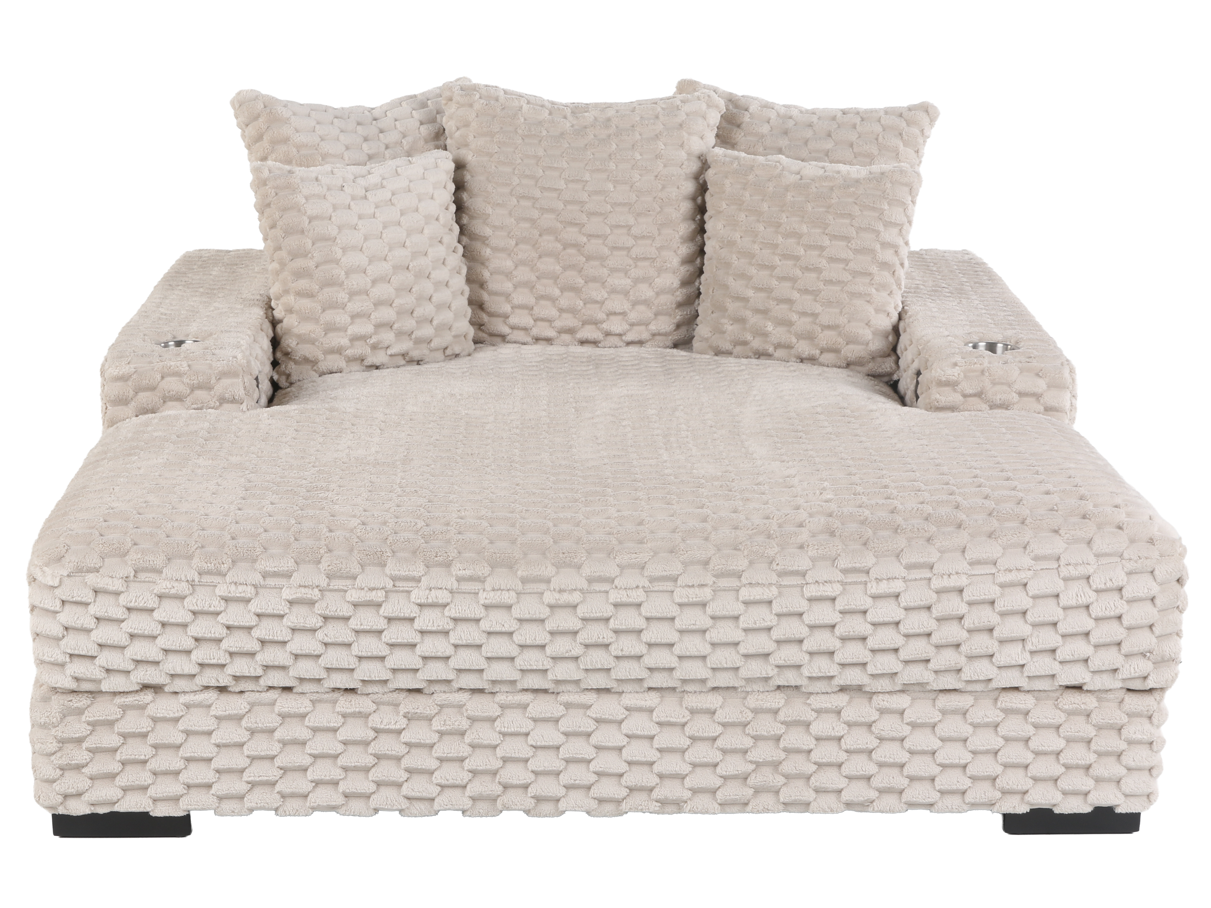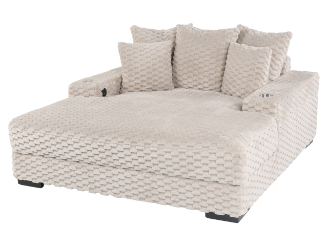 Elevate your lounging experience with this oversized textured chaise lounge, where bold design meets ultimate functionality. Wrapped in a rich 3D honeycomb fabric, this statement piece adds depth, texture, and modern flair to any living space.