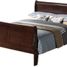 - Panel Sleigh Bed Design: Features a classic and elegant design with wood veneers and trim.