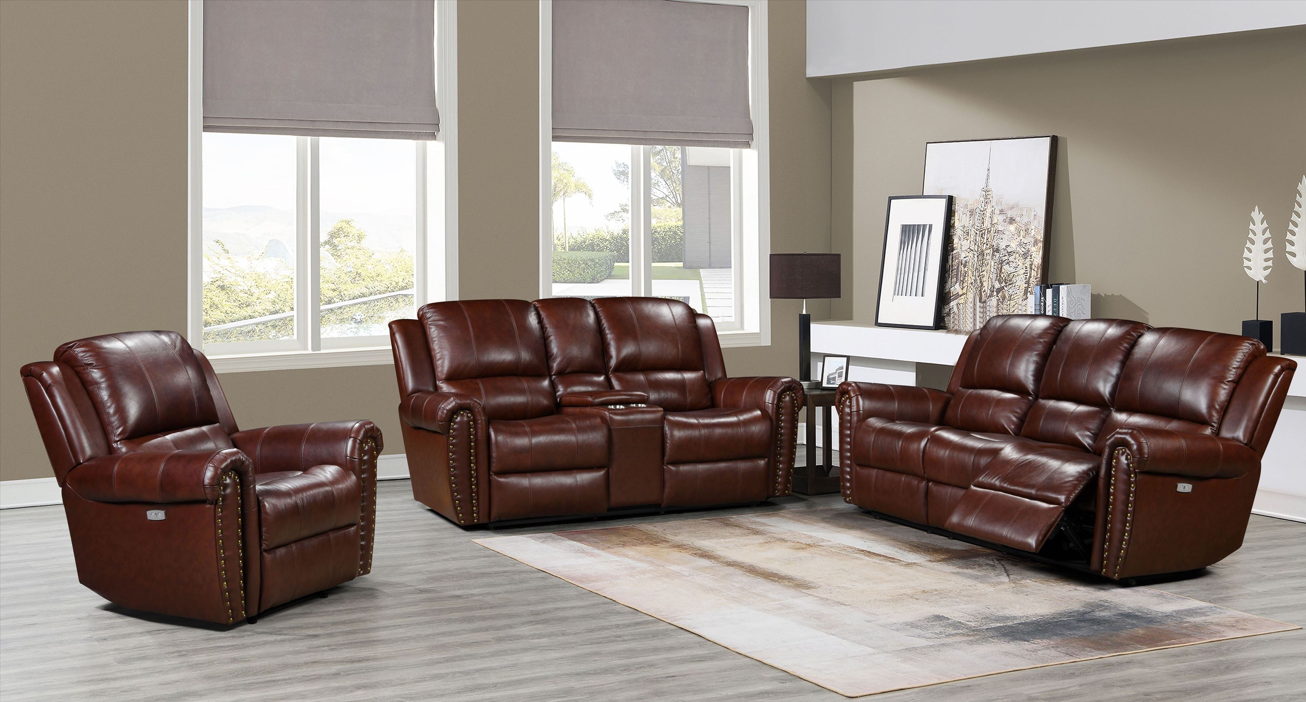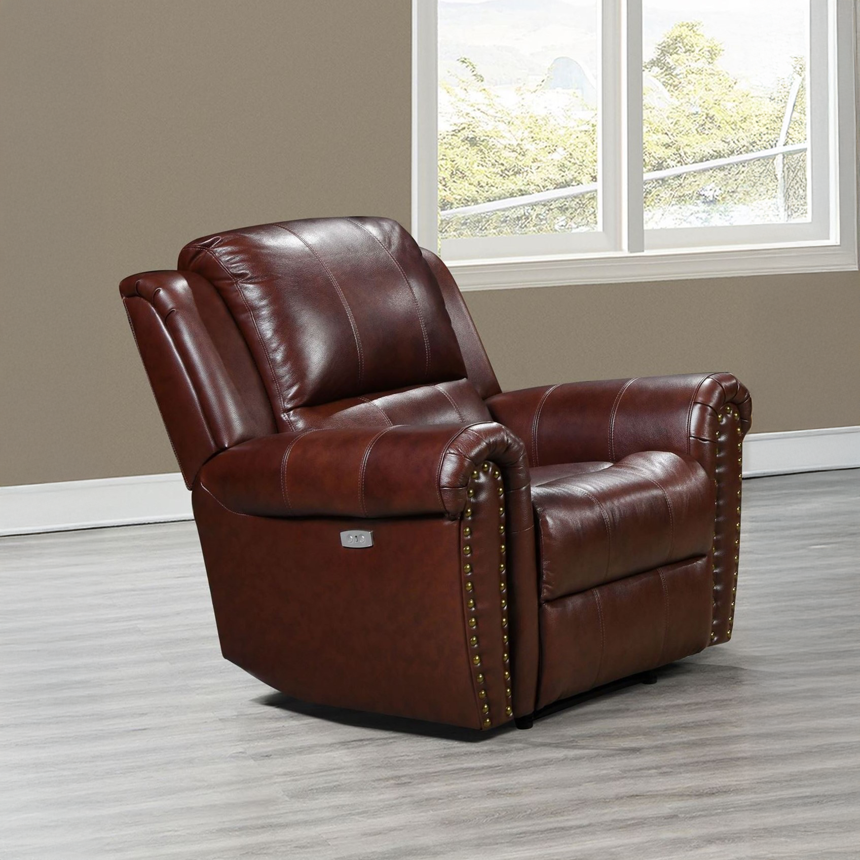 Indulge in unparalleled comfort with our Top Grain Leather Power Recliner Chair. Crafted with premium top grain leather on the seating areas and soft faux leather on the sides and back, this chair offers the perfect combination of luxury and practicality. The rich brown hue of the leather complements any decor, while the elegant nailhead trim adds a touch of sophistication. Designed for ultimate relaxation, this power recliner features a smooth reclining mechanism that lets you adjust the backrest and footrest to your perfect position with the touch of a button. The plush cushioning provides exceptional support, ensuring you can unwind in complete comfort.